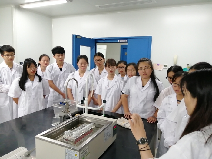 结合学生所学专业情况,现场演示了注射剂药物的无菌检查操作、不同微生物在选择性培养基上的菌落形态、大鼠心脏解剖、病理切片操作、注射剂的体外试管法溶血性试验、中药材传统经验鉴别、显微鉴别、液质联用仪现场操作、高效液相色谱仪工作原理、气相色谱仪现场操作、溶出仪现场操作等精彩内容,为同学们搭建了书本理论与实践知识的桥梁,也为同学们揭开了药品检验的神秘面纱,给了同学们全新的体验,为他们将来投身医药相关工作提供了选择参考。