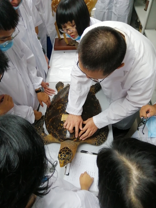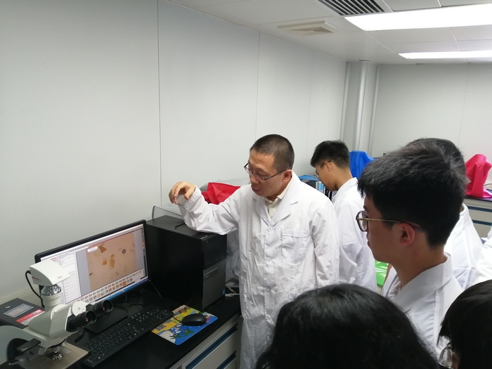 同学们深入中药(黎药)检验室,先是观摩采用传统经验方法鉴别玳瑁,继而通过显微鉴别药材粉末及其提取物,再通过高分辨率质谱定性分析中药材有效成分,直接感受到了中药检验技术的高速发展和更新换代。