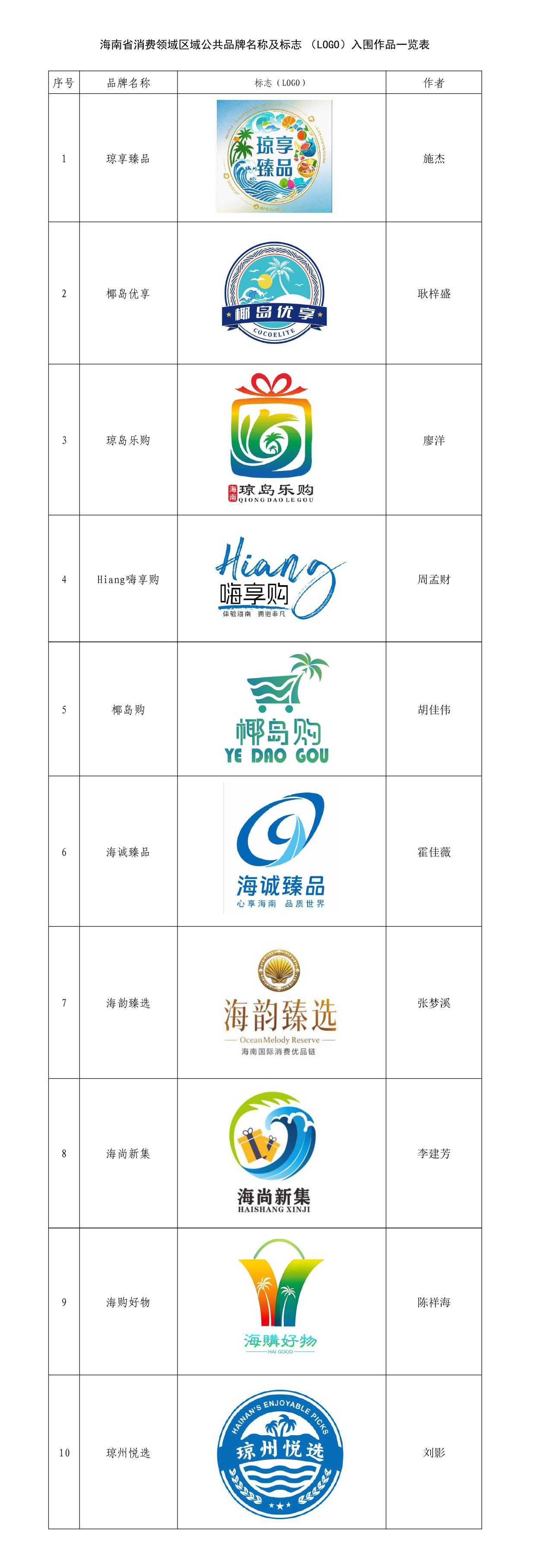 附件:海南省消费领域区域公共品牌名称及标志(LOGO)入围作品一览表